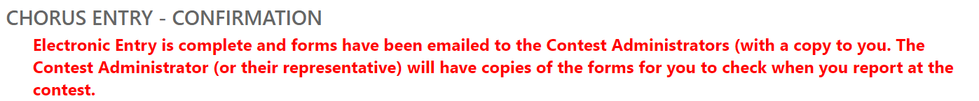 You can review the Entry Form, the Chorus List or the Song List by clicking on the appropriate button.
