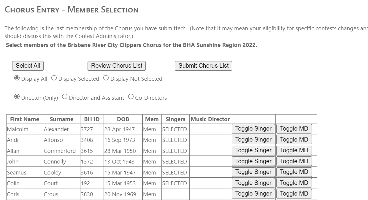 The functionality in this screen is very similar to that in the standard Chorus Entry screens and you are referred to this.