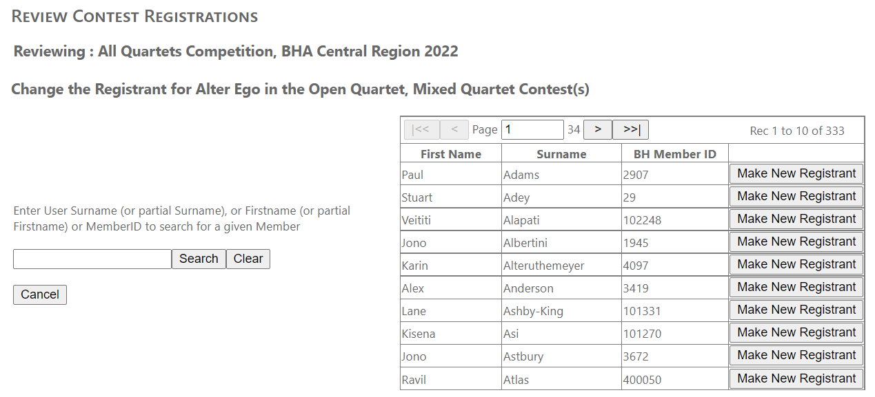 Use the paging buttons to find the new registrant or use the search box on the left to find them. Click on Make New Registrant to do so.