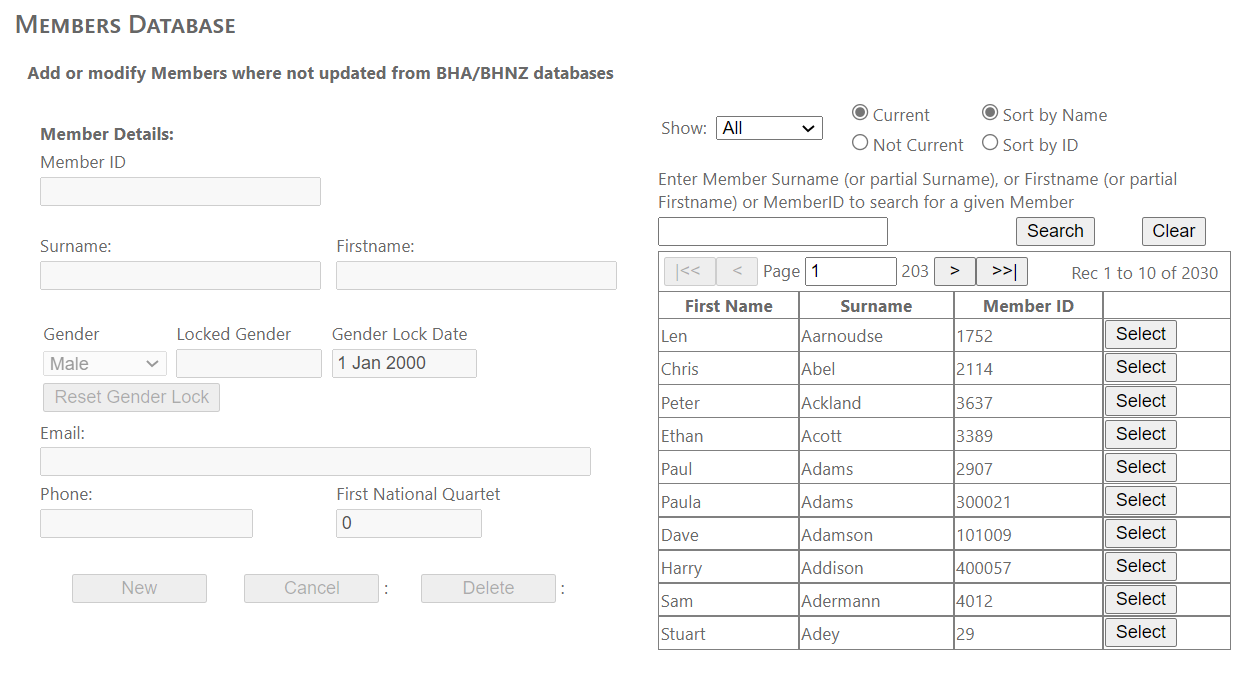 The members database gives access to the members database on the contests website. Although this is primarily a reflection of the BHA and BHNZ member databases, there are other "members" who are not members of these organisations: