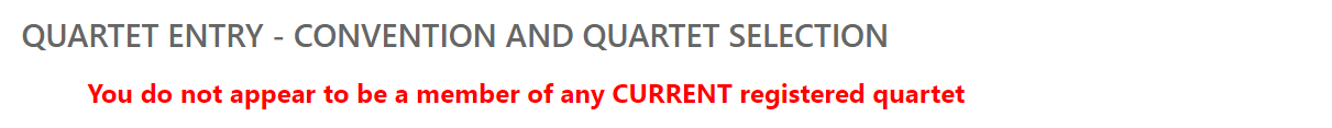 If you get this warning, you should check you selected the right contest group, check your quartet is registered correctly with BHA or BHNZ and if you still consider you should be able to enter a contest in the selected contest group, contact the CA.