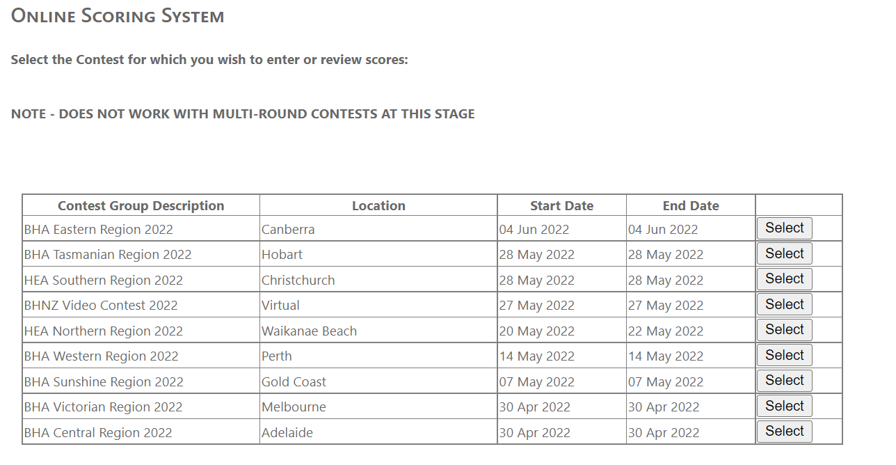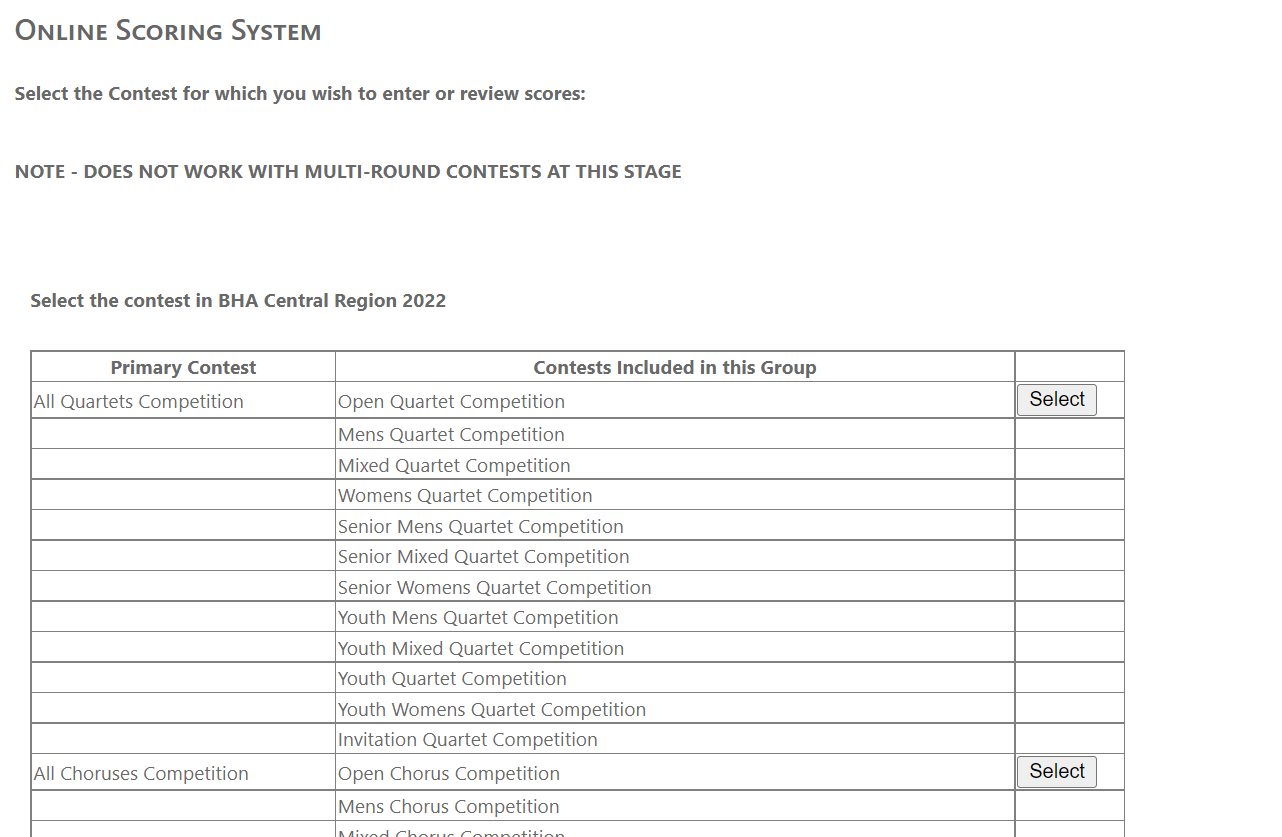Assuming you are a judge, then selecting the primary contest, in this case the All Quartets Competition will give the following: