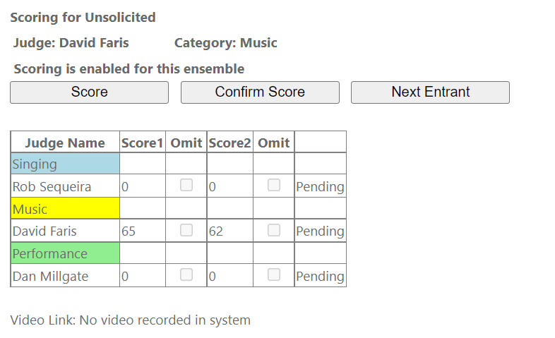 If the contest is a pure video entry contest using links not a live stream, the ADM Judge will have watched all the videos, checked the order of the songs and then enabled scoring for all the entries.